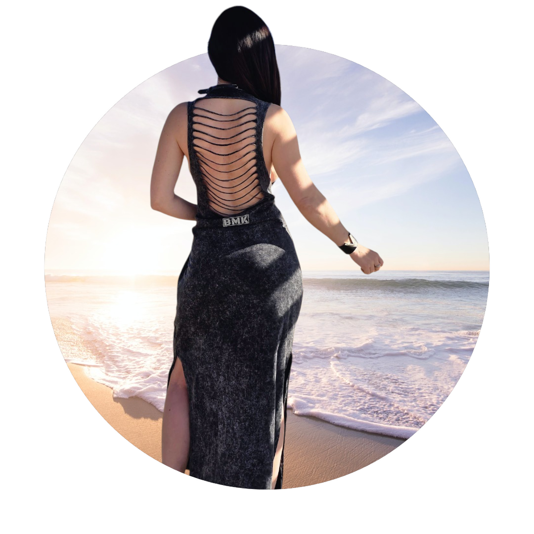 Moderni dizajn: Crni detalji sprijeda, 3D "BMK" print i otvorena leđa dodaju dozu odvažnosti.