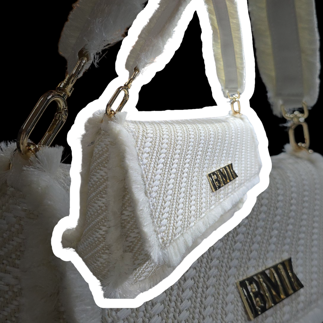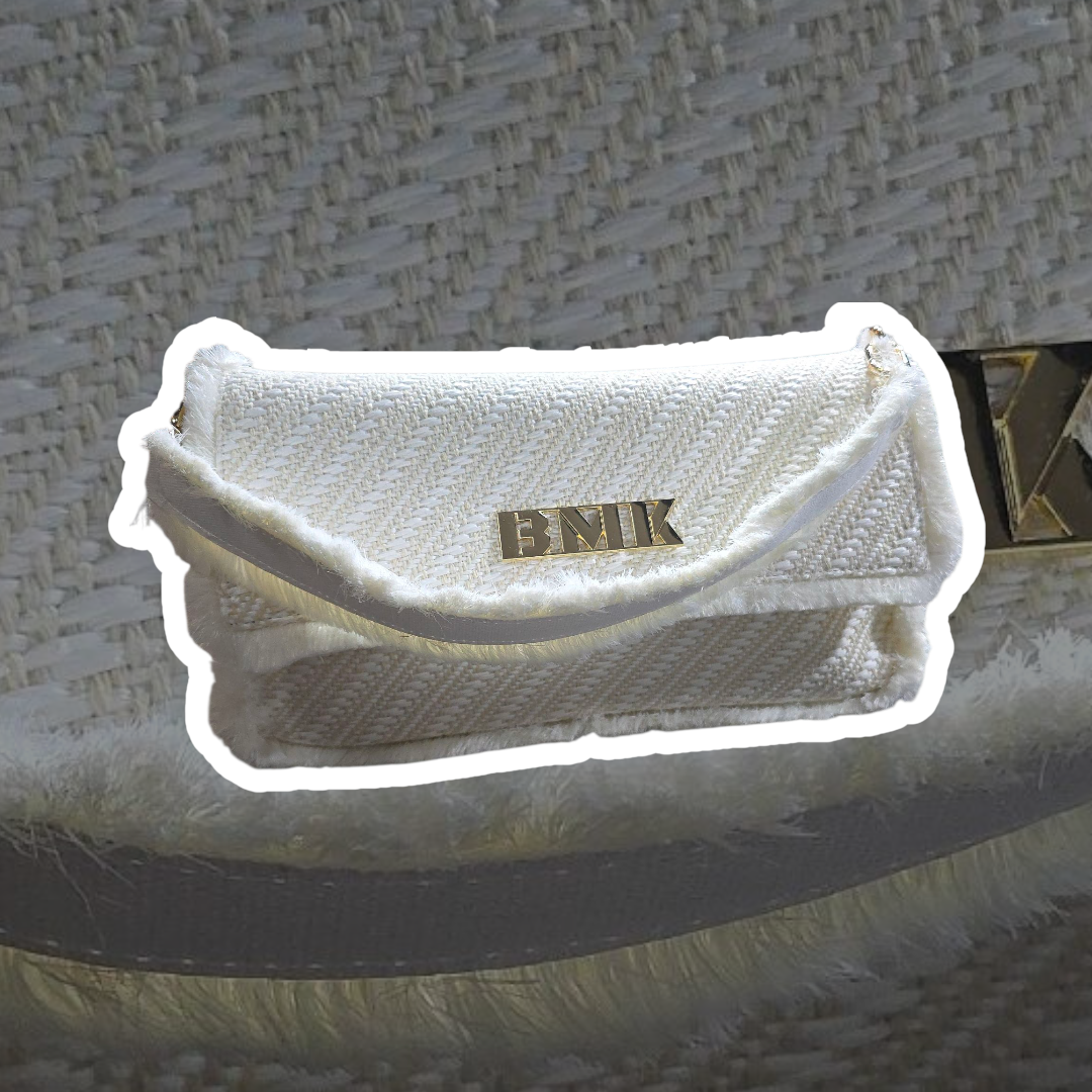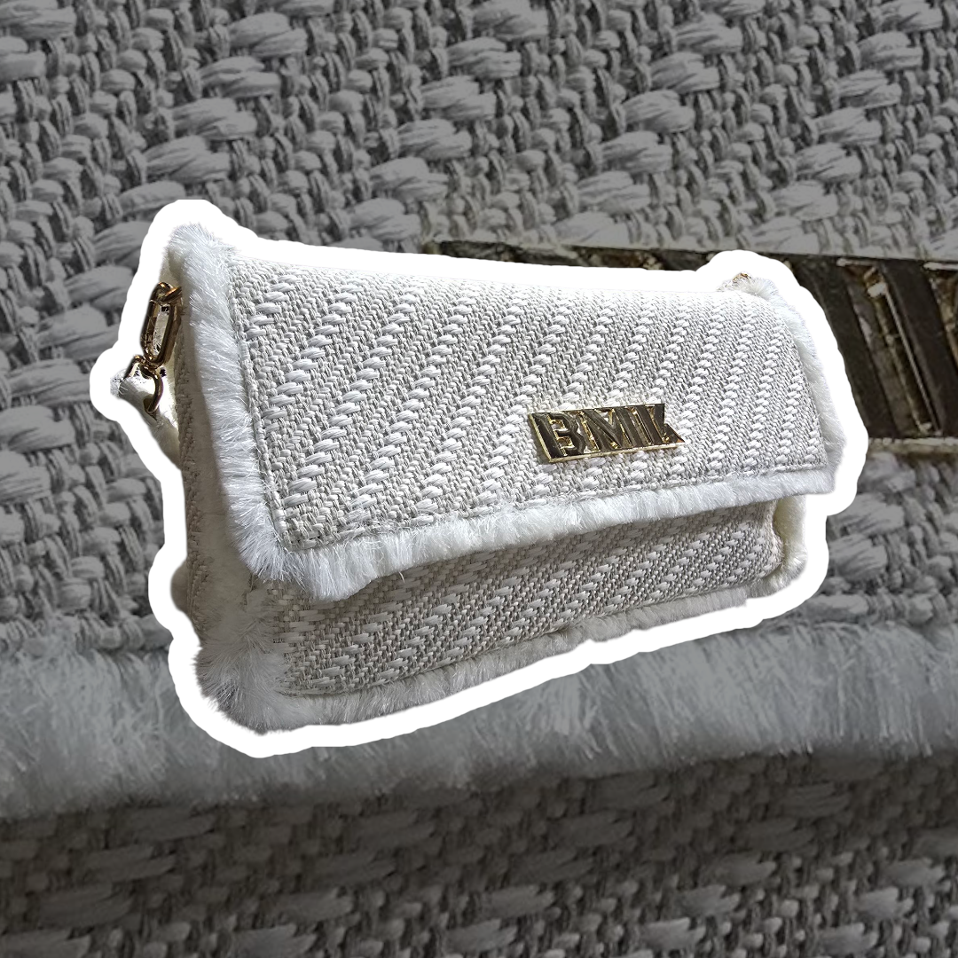 Sa svojim dijagonalnim tkanjem i umjetnim krznom, ova torba nije samo modni dodatak, to je izjava.
